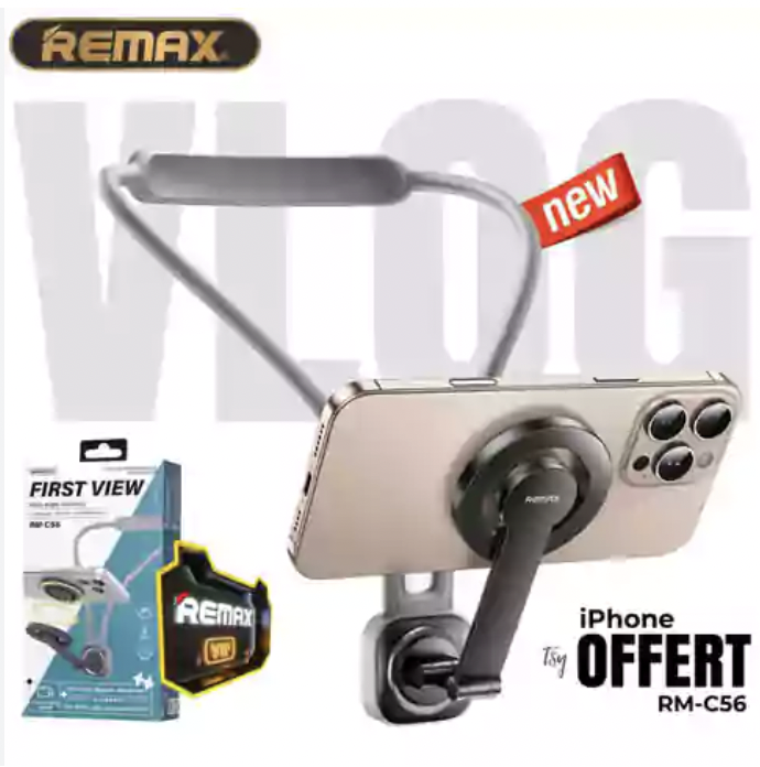 Product Description Experience ultimate hands‑free convenience with the REMAX RM‑C56 Neck Holder — a flexible, neck‑worn phone stand designed for comfort and versatility. Perfect for streaming, video calls, gaming or simply lying back and relaxing with your device without holding it. With its adjustable, bendable design and MagSafe‑compatible mount, it suits a wide range of smartphones and viewing scenarios.Key Features