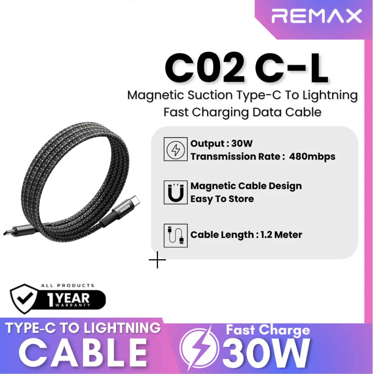 REMAX C02 C-L Magnetic Suction Type-C to Lightning Fast Charging Data Cable (30W) – Black